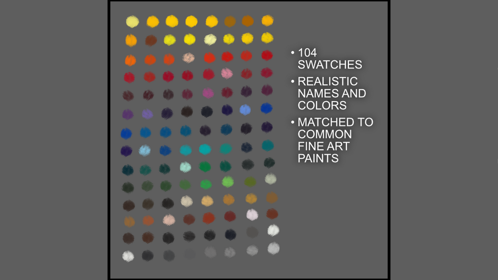 Artisan Color Palette for Krita. These colors closely match that of real world paints in Krita. 104 total swatches, realistically named, and a ton of fun to replicate your traditional workflows in digital. To install just use the import option on the palette in Krita and load the file.